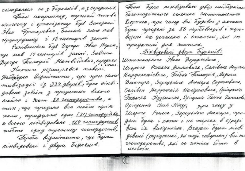 «Там є все: скільки було дворів, кому належали землі, яке господарство вели. А потім уже йдеться про колективізацію», – додала вона.