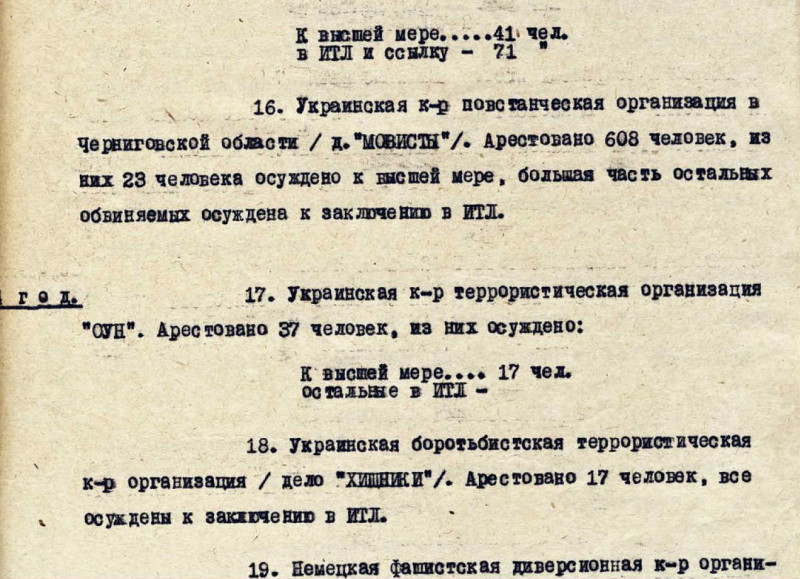 «У більшості це були надумані справи, які вигадували з метою загальних репресій або знищення. Бувало, що це залежало від конкретного слідчого чи прокурора на місці. Бо треба було виконувати плани, показувати конкретні цифри.