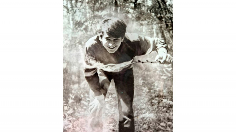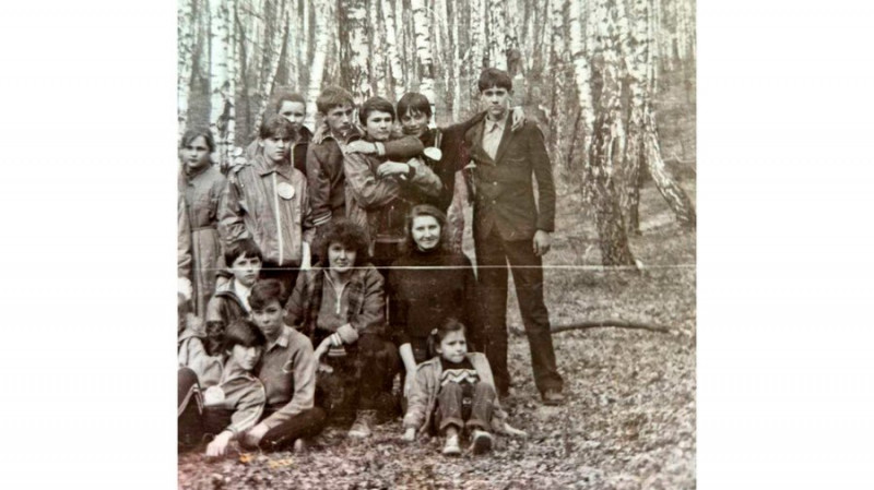 Олександр Довгач (у верхньому ряду третій праворуч) зі своїми однокласниками на природі у 1990 році. Тетяна Казімір