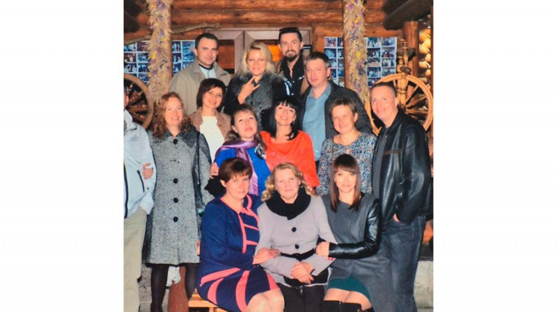 Олександр Довгач (у верхньому ряду ліворуч) на зустрічі однокласників у Чернігові у 2015 році. Тетяна Казімір