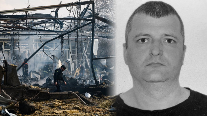 Колаж із зображенням місця вибуху в Чернігові 2 квітня 2026 року та загиблого Олександра Юдицького. Максим Кішка / «Волонтери Північ»