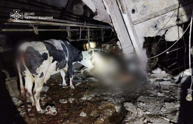 Ворог вдарив по корівнику — одна корова загинула. Пожежу на місці удару загасили вогнеборці.