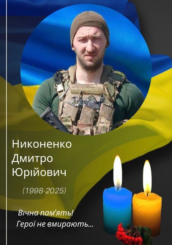 «На щиті» назавжди повертається додому Никоненко Дмитро Юрійович із селища Срібне, який загинув під час виконання обов’язків військової служби 18.07.2025.