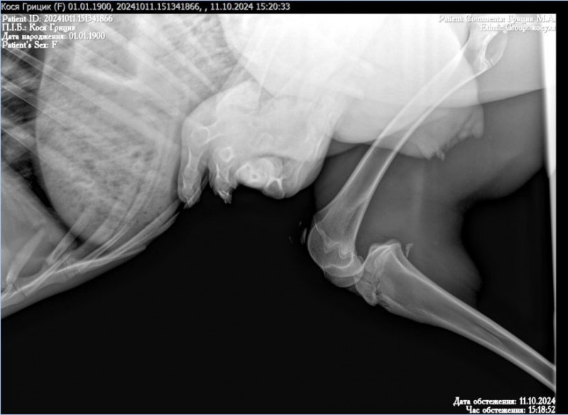 Як йдеться у дописі, травмувалась тварина приблизно десять днів тому та вже перенесла операцію по ампутації задньої кінцівки. Крім цього, має ще численні серйозні травми.