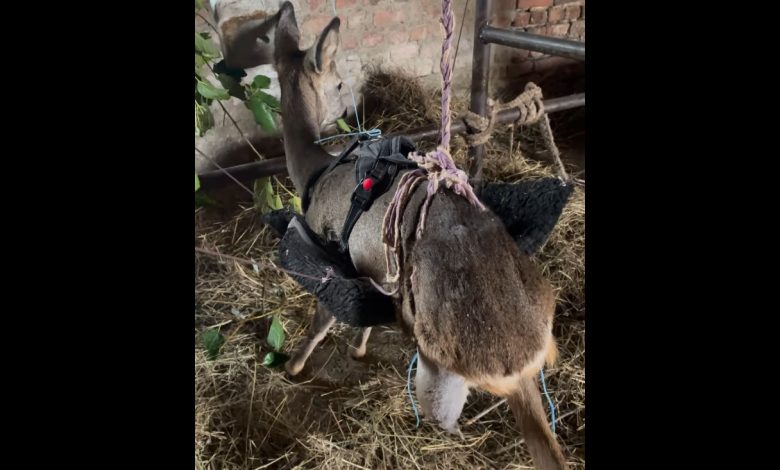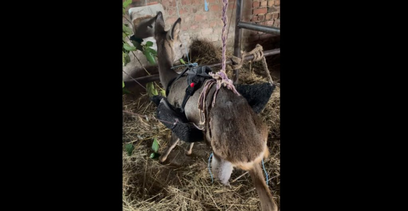 Тож, зараз, щоб дати можливість травмованій тварині хоч трохи рухатись, її підвішують двічі на день.