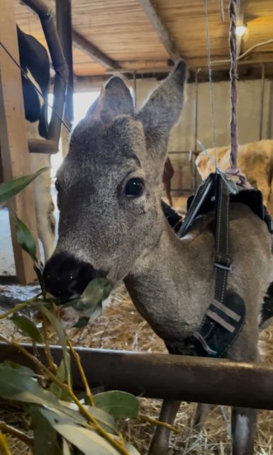 Крім цього, на іншій нозі у косулі розірвані зв’язки, тому тварина не може піднятися на ноги. Це значно ускладнює процес її лікування та реабілітації.