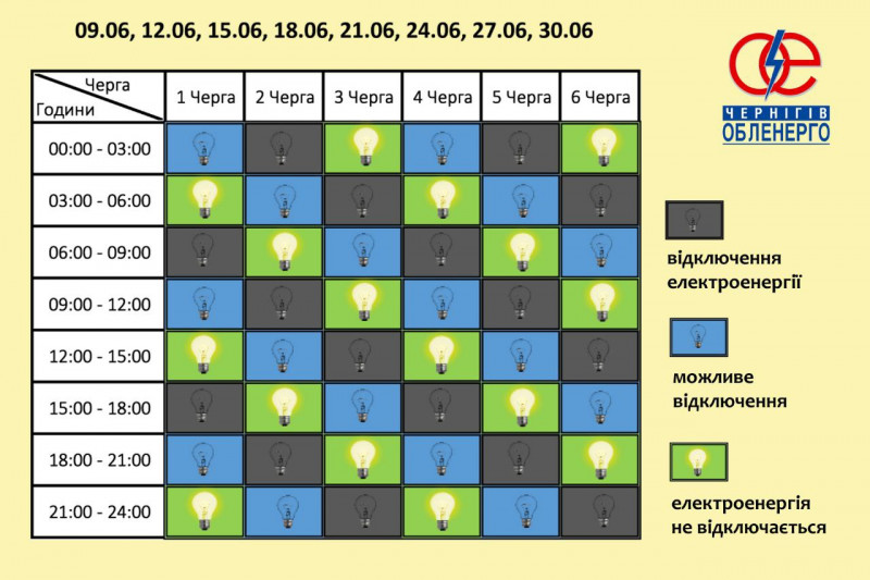 Завтра, 27 червня, на Чернігівщині знову застосують Графік погодинних відключень.