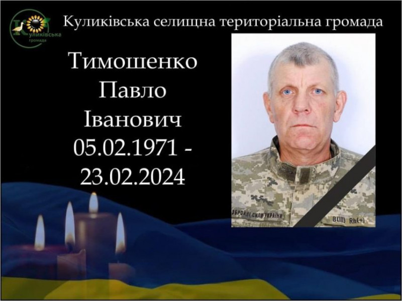 23 лютого 2024 року, повернувшись додому після чергування, на 54-му році життя раптово помер військовослужбовець ЗСУ ТИМОШЕНКО Павло Іванович.